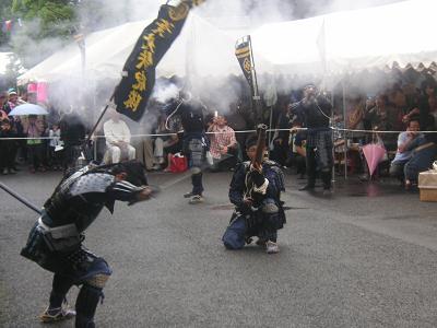 また屋外では”葦分鉄砲隊”も来場し、小雨が降る中火縄銃を披露して