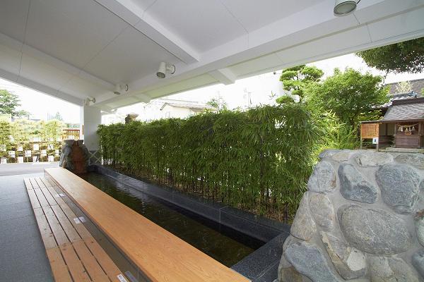 また、弊社入口を入りまして右手に源泉かけ流しの足湯もございます。